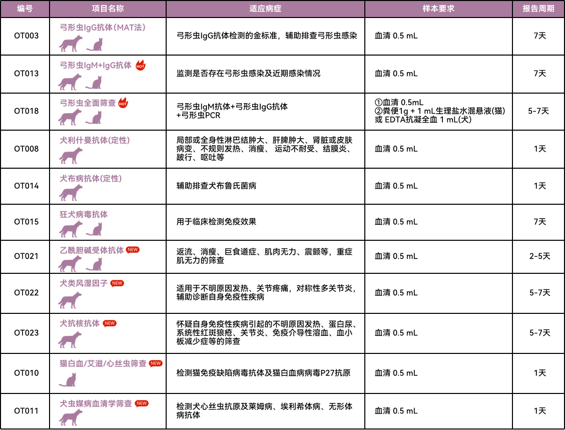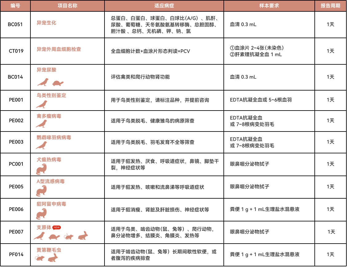 PCR检测项目列表