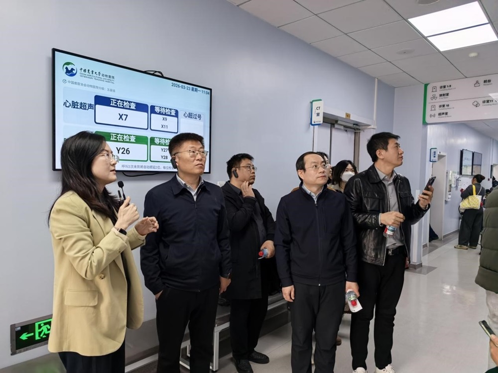 Ø 中国动物疫病预防控制中心主任、党委书记孙研带队参观指导了中国农业大学教学动物医院,实地了解临床教学体系建设、动物诊疗服务提质、学科实践平台搭建等工作情况。李格宾副院长接待参观。